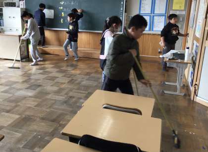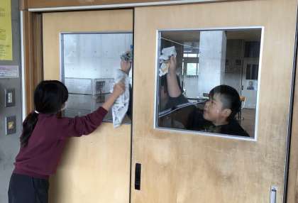 5年生 大掃除 公開日 2025/12/23 更新日 2025/12/23 お知らせ 冬休み前の大掃除をしていました。教室だけでなく、手洗い場やトイレなども掃除していました。濡らしたガラスを新聞紙で磨いて綺麗にする姿も見られました。みんな一生懸命取り組み、大変きれいになりました。