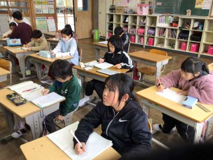 分数の計算方法を学んでいました。1から分数を引く計算に少し苦労していましたが、意味を理解し、コツをつかむと黙々と問題を解いていく姿が見られました。