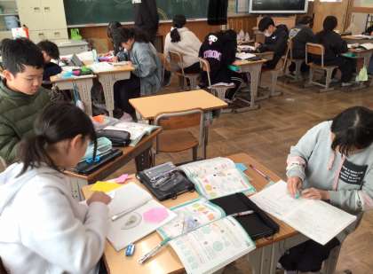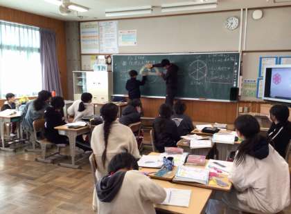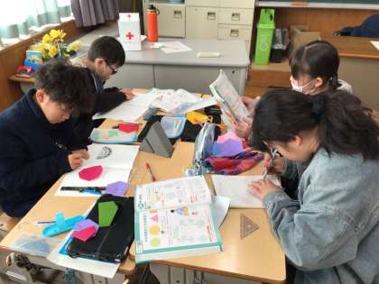 5年生 算数 公開日 2026/01/09 更新日 2026/01/09 お知らせ 「円と正多角形」の授業でした。前時に折り紙で作った正六角形の特徴をもとに、ノートに正六角形をかいていました。分度器などを使って特徴を調べ、試行錯誤しながらかく姿が見られました。