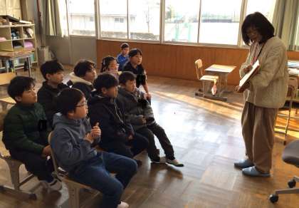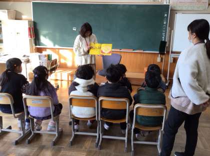 2年生 おはなしでてこい「読み聞かせ」 公開日 2026/01/15 更新日 2026/01/15 お知らせ 「おたからパン」というお話を夢中になって聞いていました。パンが美味しそうで引き込まれていました。