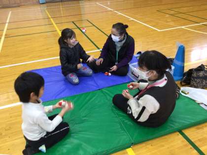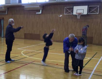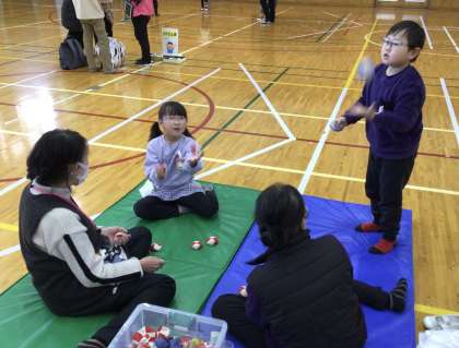 1年生 昔遊び2 公開日 2026/01/21 更新日 2026/01/21 お知らせ 竹とんぼ、お手玉で遊ぶ様子です。遊び方やコツを教えていただいて何回も練習するうちに上手に遊べるようになり、みんな大喜びでした。