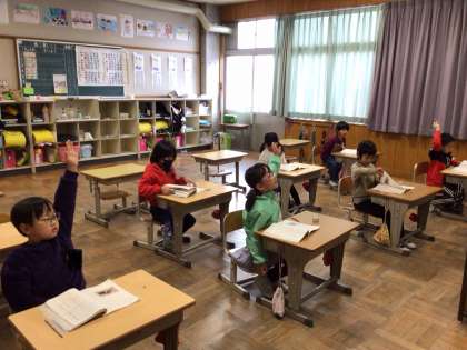 1年生 国語 公開日 2026/01/23 更新日 2026/01/23 お知らせ 「子どもをまもるどうぶつたち」という説明文の学習をしていました。一文字分下がっている段落について学び、段落を見つけて順番に番号をつけていました。下がっているところを見つけると元気よく手を挙げて発表していました。