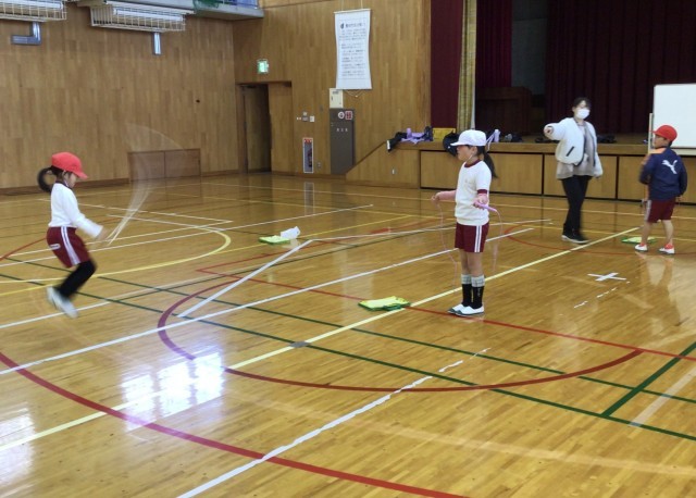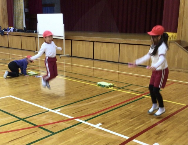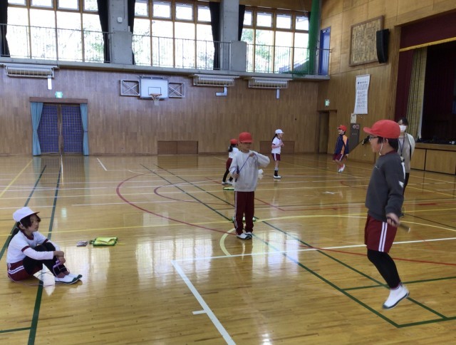 2年生も縄跳びをしていました。友達に跳べた回数を数えてもらったり、アドバイスしてもらったりしながら、一生懸命練習していました。