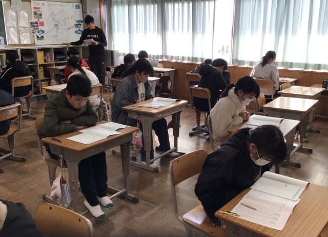 1、3、5年生は知能検査がありました。先生に問題の説明を聞き、練習してから問題を解きます。よく話を聞いて集中して取り組んでいました。