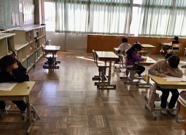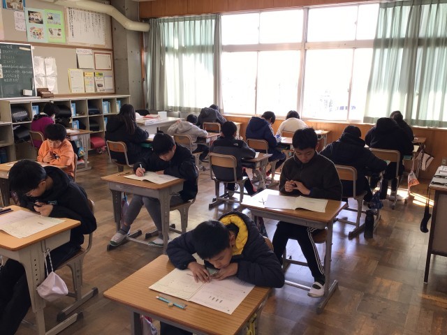 2時間目は算数の学力テストでした。大変静かに集中してテストに取り組んでいました。