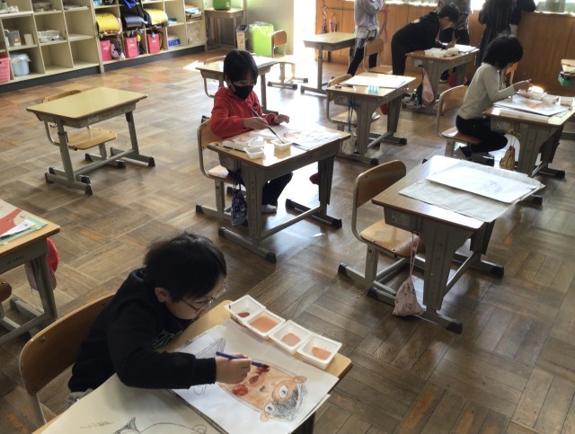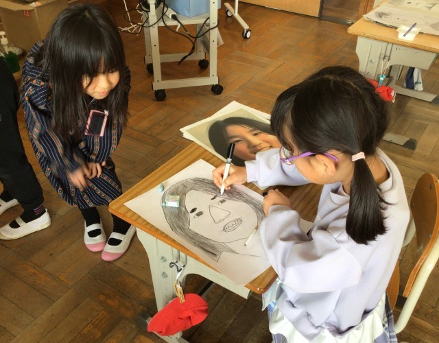 1年生 図工 公開日 2026/02/16 更新日 2026/02/16 お知らせ 自分の顔と6年生の顔を描いていました。6年生の似顔絵は6年生プレゼントするので、写真を窓のところで透かして紙に描きました。色の塗り方を先生に教えてもらいながら丁寧に描いていました。写真は5枚あります。写真をクリックすると全ての写真を見ることができます。 +2