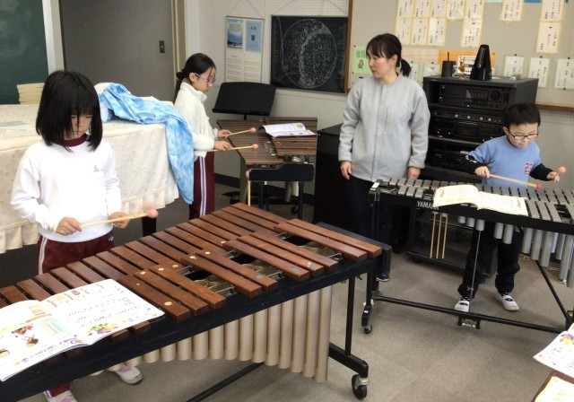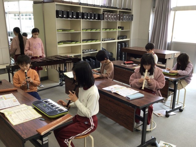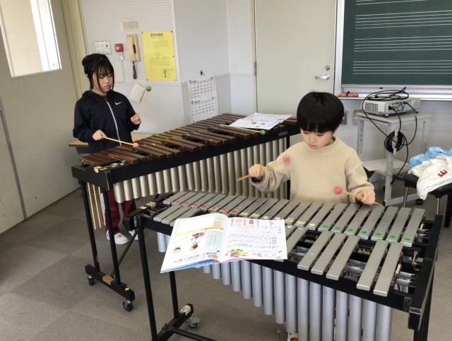 「パフ」の合奏練習をしていました。楽譜を見ながら繰り返し繰り返し練習していました。