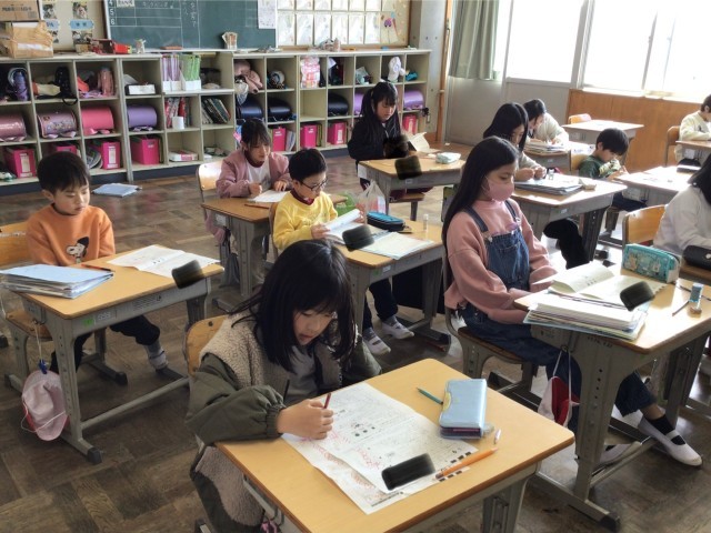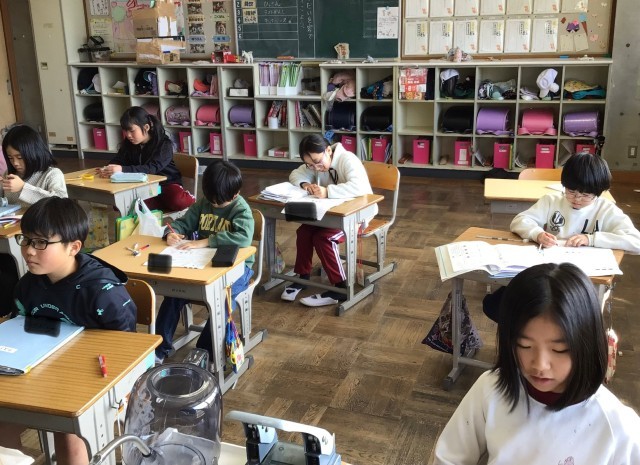 理科のテストが返され、間違えた問題の直しをしていました。先生の説明を聞きながら一生懸命やり直していました。