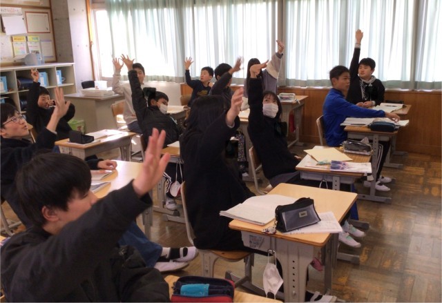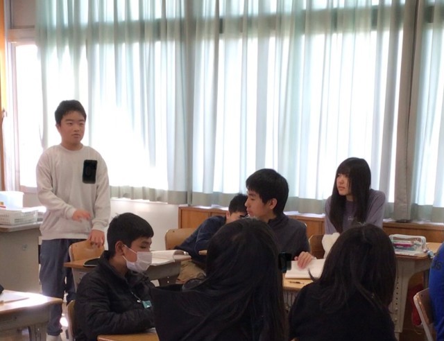 「表現をくふうする」という授業でした。例文を見てどんな工夫がされているか見つけていました。今後「たとえ」などを使ってより自分の思いが伝わるように表現できるといいですね。