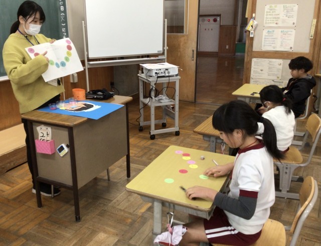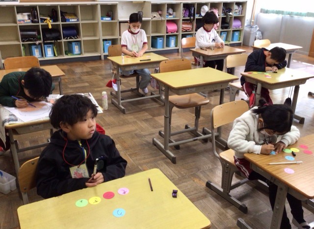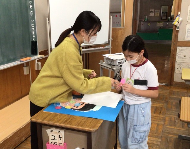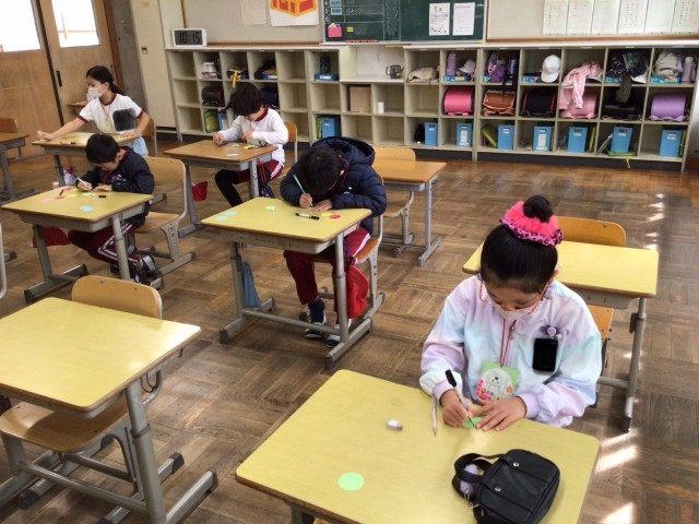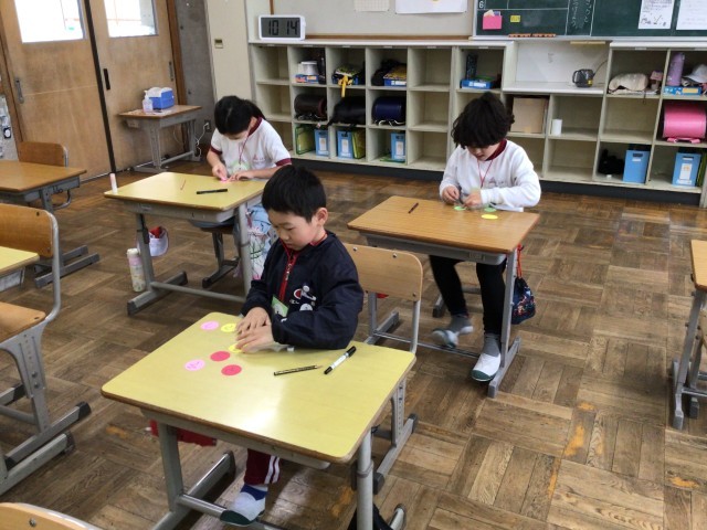 6年生にプレゼントする首飾などを作っていました。「そつぎょうおめでとう」と丁寧に書いていました。