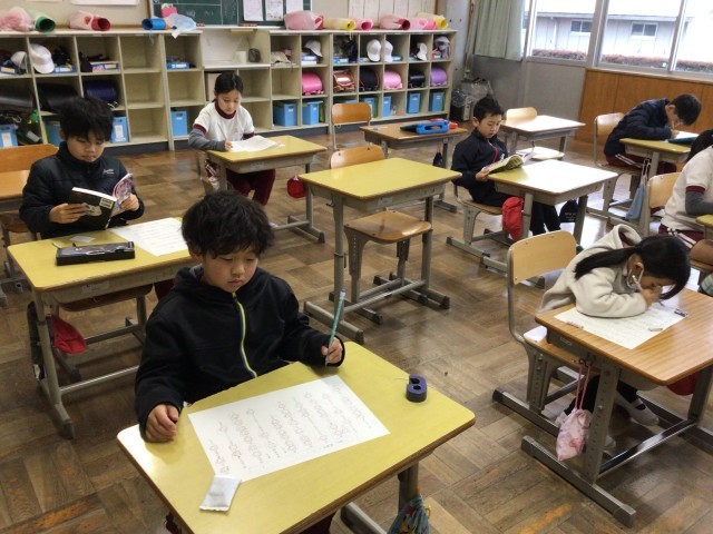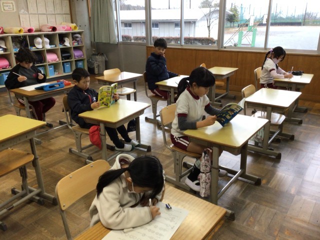 漢字プリント取り組み、終わると静かに読書をしていました。