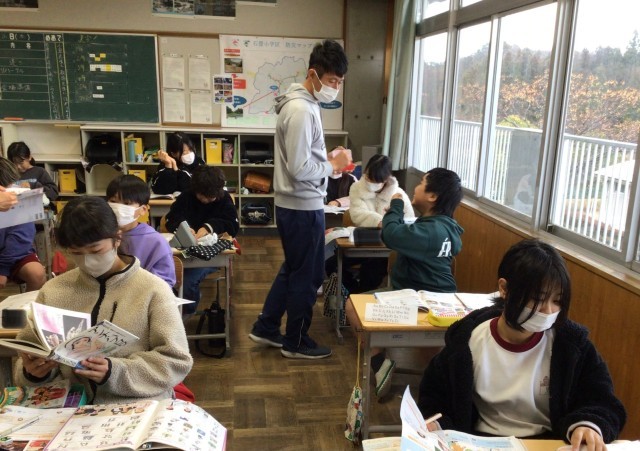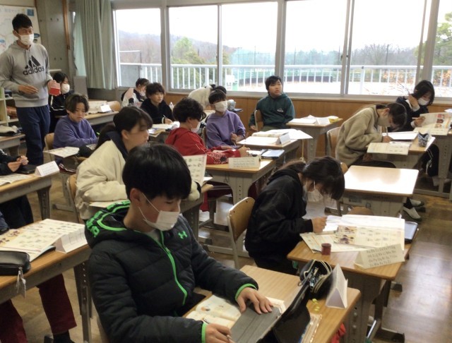 あこがれの人について紹介し合う学習でした。まずはあこがれの人を決め、その理由を書いていました。ALTの先生に相談しながら書く姿も見られました。