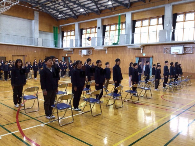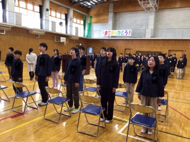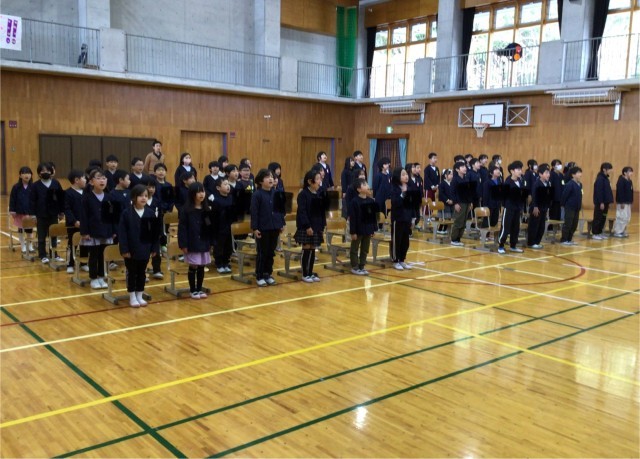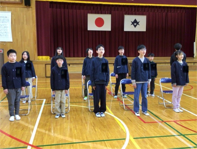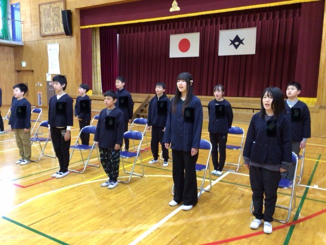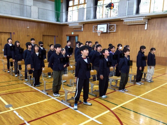 呼びかけと在校生の歌「さよなら」卒業生の歌「正解」以外は、全て通して練習しました。少し直すところはありますが、立派な姿が見られました。最後に校歌を練習しました。大きな口を開いて歌うことができました。6年生が歌う最後の校歌になります。当日も元気な歌声を響かせてほしいと願っています。