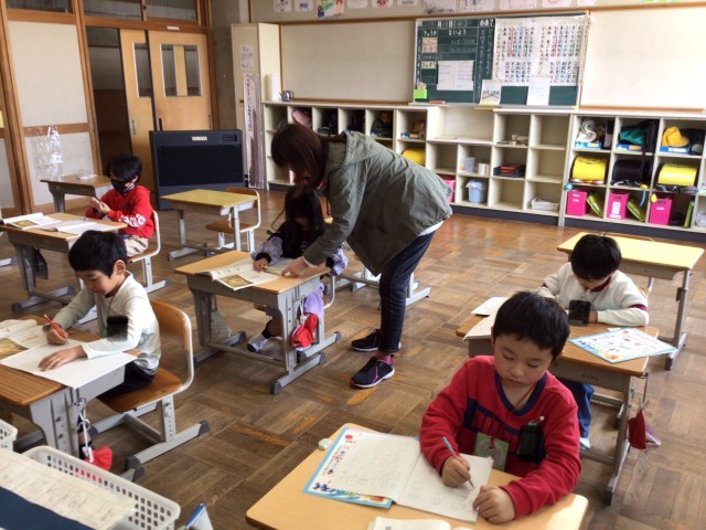 「かんじをつかおう」という学習でした。学んだ漢字を使って、文を丁寧に書いていました。