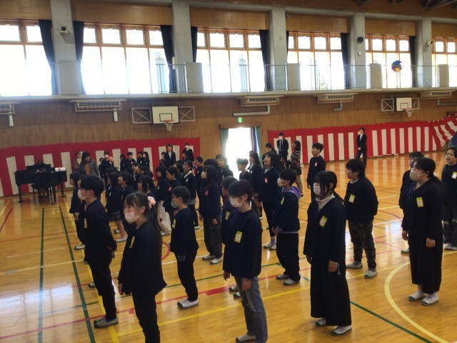 本日、令和7年度の修了式を行いました。各学年の代表が修了証を校長先生から受け取りました。みんな真剣な面持ちで受け取っていました。そのあと、1、3、5年生の代表児童によるスピーチを行いました。今年度の成長を振り返るとともに、1学年上がる来年度への意気込みを話してくれました。校長式辞では、学校教育目標にある「気づき、考え、実行する」をもとに、今年度の児童の頑張りや成長についてのお話がありました。児童は、最後まで集中して聞くことができており、成長を感じました。最後に、校歌を元気よく歌い締めくくりました。