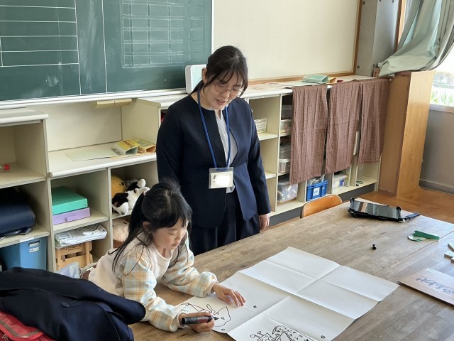 あす・くす教室へ行くと、先生と楽しくお絵かきをしていました。