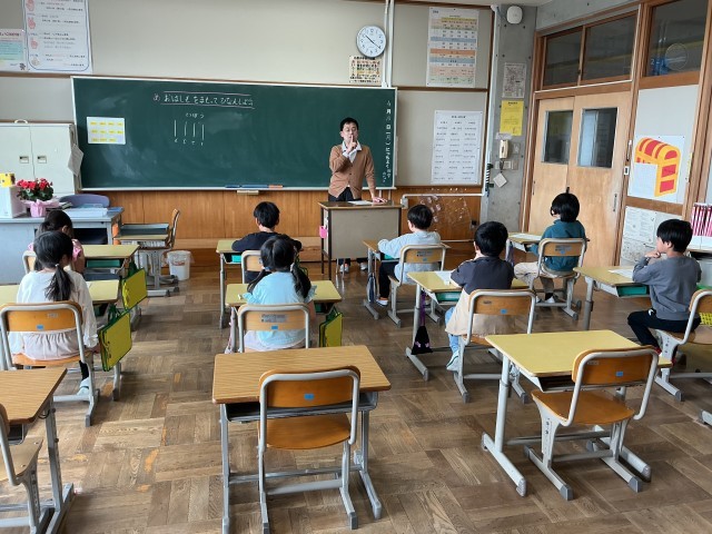 「必要のないことを話してはいけません。訓練が終わって教室に戻るときは、おしゃべりしないで上手でした」と先生から言われました。また、「先生がいないときの避難で気を付けること」をみんなで考えました。