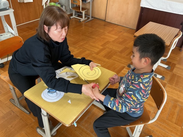 くすのき学級では、はさみでへびを切っていました。曲線を切るのは、とても難しいですね。慎重に切っていましたね。