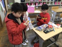 ゴムや磁石、電気など、今まで学んだことを生かして作ったおもちゃの発表会をしていま...