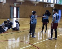 バスケットボールをしていました。チームで相談し、作戦を立てる姿も見られました。写...