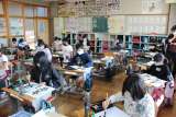 今日の授業の様子です。1年生は図工の「かざって何入れよう」でした。箱などに装飾...