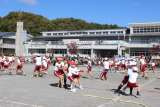 新種目「台風の目」の競技の様子をお知らせします。赤組が終始リードしていましたが...