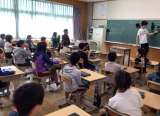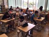 5年生の外国語の授業の様子です。 道案内をする動画を見て、場所や位置を答えたり、...