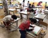 1年生の国語の授業の様子です。 「見」「花」「先」といった漢字の最後の画の跳ね方...