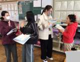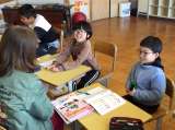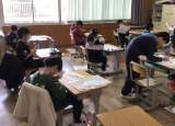 1年生の図工の授業の様子です。 6年生の似顔絵を描いていました。卒業を祝う会でプ...