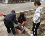 1年生の生活科の授業の様子です。 チューリップの球根を植えていました。鉢に新しい...