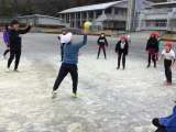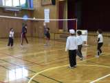 4年生の体育の授業の様子です。 ミニソフトバレーをしていました。敵のコートに返す...
