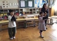 「こいぬのマーチ」の音楽に合わせてカスタネットをたたいていました。最後は音楽に合...