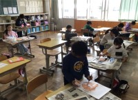 1年生が以前描いていたように、2年生も自分と6年生の似顔絵を描いていました。大変...