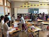 2年生の音楽の授業の様子です。 「子ぎつね」をベルで演奏する練習をしていました。...