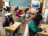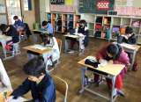 5年生がテストに取り組む様子です。 大変静かに集中して取り組む姿が見られました。