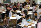 3年生の外国語と理科のテストの様子です。 外国語では、聞き取りをしていました。理...