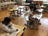 園の先生に自己紹介をしたり、新しい文字を書いたりしました。園の先生に「じょうず!...