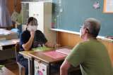 4〜6年生の懇談会の様子です。コロナ禍ですので、透明の仕切り板を置いて行ってい...