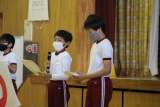 集会での各種委員会の活動の様子です。保健委員会は、「熱中症に関する○×クイズ」...