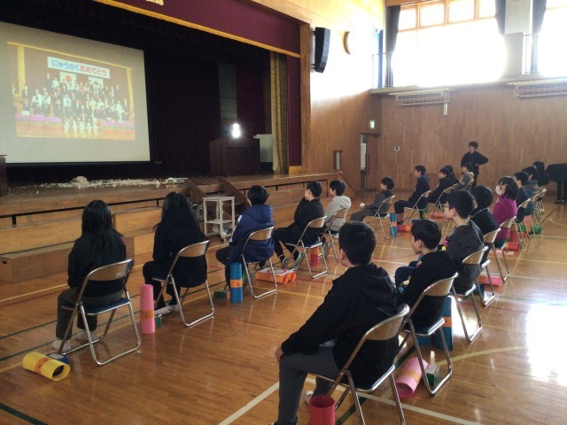今日は6年生の卒業を祝う会がありました。1、2年生は、6年生が1年生の時の運動会...