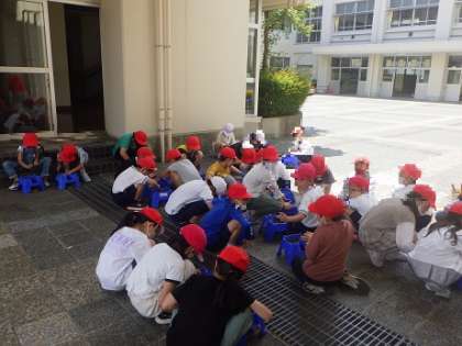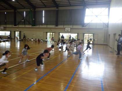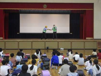 2、3、4年生が防犯教室を行いました。写真左は危険な場所やもしもの時、身を守る方法を聞いている様子です。写真中は実際に練習で逃げる様子です。「つみきおに(ついていかない、みんないっしょ、きちんと知らせる、おおごえで助けを呼ぶ、にげる」を教えてもらいました。