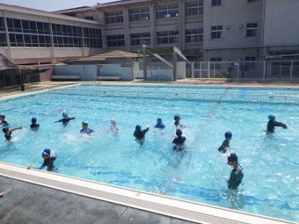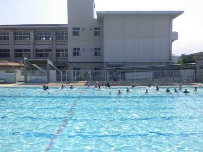 本日は、1年生、2年生、4年生、なかよしの子どもたちが初めて水泳授業を行いました。