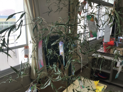 また、今日は夕方から天気が崩れる予報です。天の川は見られないかもしれませんが、子どもたちは、短冊に願いを書き、七夕飾りに飾り付けしていました。