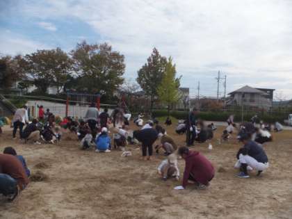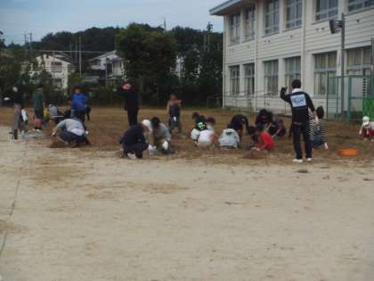 PTA主催の親子クリーン活動へ多くの皆さまに参加いただき、校庭の草取りを行ってくださいました。運動場が、運動会に向けて整備されました。ありがとうございました。