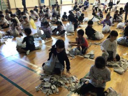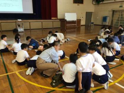 スクールカウンセラーに講師としてお越しいただき、下学年では、ストレスを解消する「新聞ビリビリ」や「呼吸法」を。上学年では、グループワークを行いました。「気分は、その時の考え方から生まれてくる」ということなどを教えて頂きました。