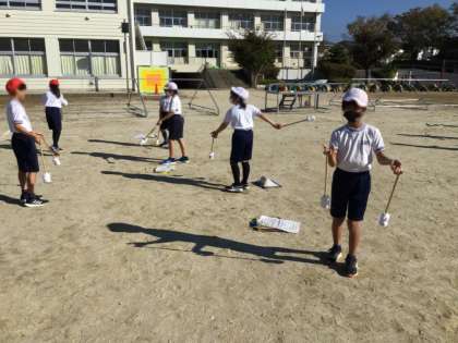 低学年、中学年、高学年それぞれ運動場で運動会の練習を行っています。子どもたちは、失敗しても、何度も繰り返して練習しています。どこまで仕上がるか自分たちの限界に挑戦します。