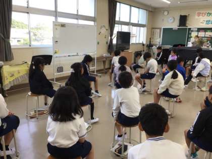 写真左は3年生の音楽の様子です。曲を聴いて曲のイメージを話し合っていました。写真中は5年生の書写の様子です。四季の字を丁寧に書いていました。写真右は2年生国語の時間です。漢字の空書きで練習していました。