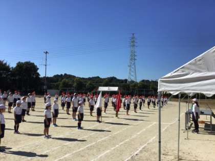 運動会まであと2日となりました。全校練習では入場から一通り通した練習がおこなわれました。