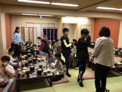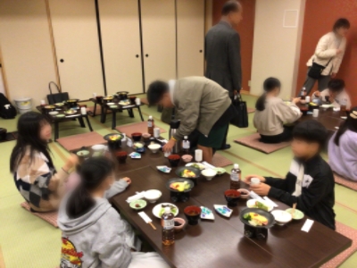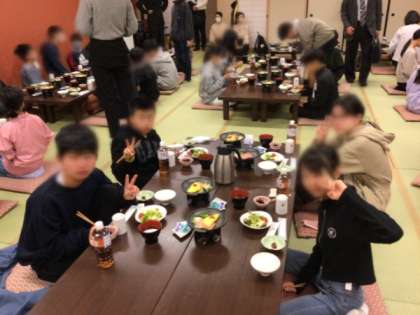 最終日の朝です。健康観察をして、朝食を食べています。少し冷え込んでいますが、今日は、班で計画したコースにしたがってタクシーで見学します。