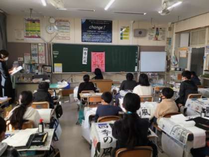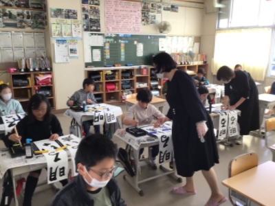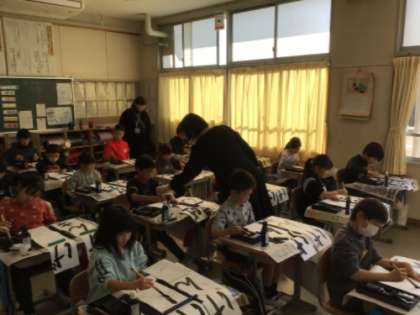 今日は、3年生から6年生で書写ボランティアの先生をお招きして書写の授業が行われました。先生に教えていただいたポイントに注意しながら練習していました。